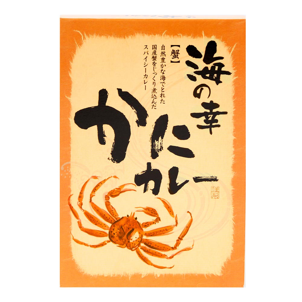 野菜[玉ねぎ(国産)、じゃがいも(国産)、人参(国産)]、カレールウ、かに(国産)、りんご、バナナ、チャツネ、トマトケチャップ、小麦粉、カレー粉、しょうが、にんにく、チキンエキス、赤ワイン、砂糖、ビーフエキス、食塩、クミン、コリアンダー、ココアパウダー、しょうゆ、オイスターソース、バター、食用油脂(牛脂、豚脂)/加工でん粉、調味料(アミノ酸等)、着色料(カラメル色素、パプリカ色素)、酸味料、乳化剤、甘味料(スクラロース)、酒精、香料、増粘剤(キサンタンガム)、香辛料抽出物、(一部にかに・小麦・卵・乳成分・牛肉・大豆・鶏肉・バナナ・豚肉・りんごを含む)