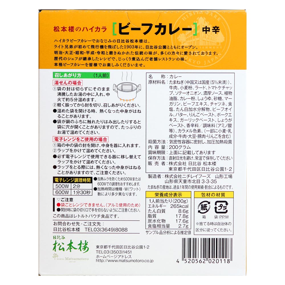 ハイカラビーフカレーでおなじみの日比谷松本楼は、ライト兄弟が初めて飛行機を飛ばした1903年に、日比谷公園とともにオープン。明治・大正・昭和・平成・令和と磨きぬかれた伝統の味が、多くの方々に愛されております。歴代のシェフが継承したレシピで、じっくり煮込んだ老舗レストランの味、本格ビーフカレーをレトルトカレーでお楽しみくださいませ。