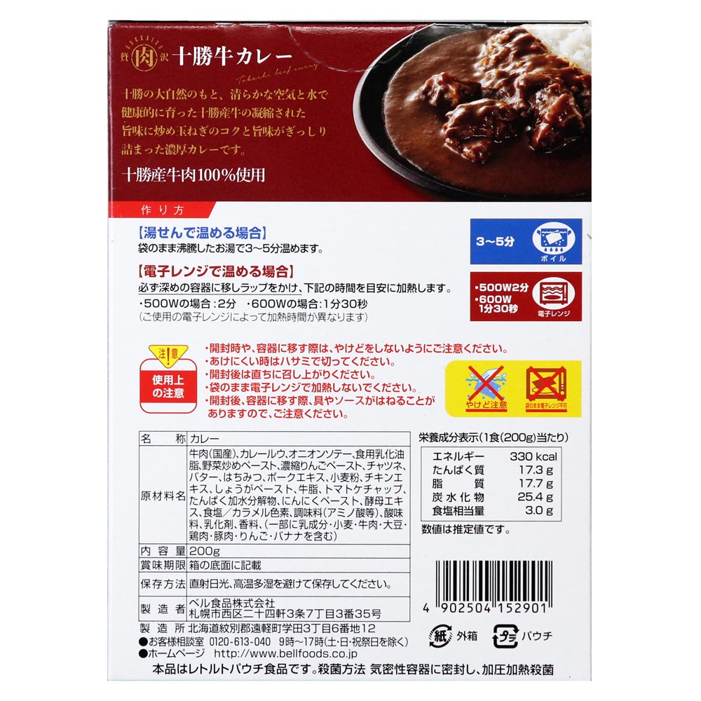 十勝の大自然のもと、清らかな空気と水で健康的に育った十勝産牛の凝縮された旨味に炒め玉ねぎのコクと旨味がぎっしり詰まった濃厚なレトルトカレーです。十勝産牛肉100%使用。