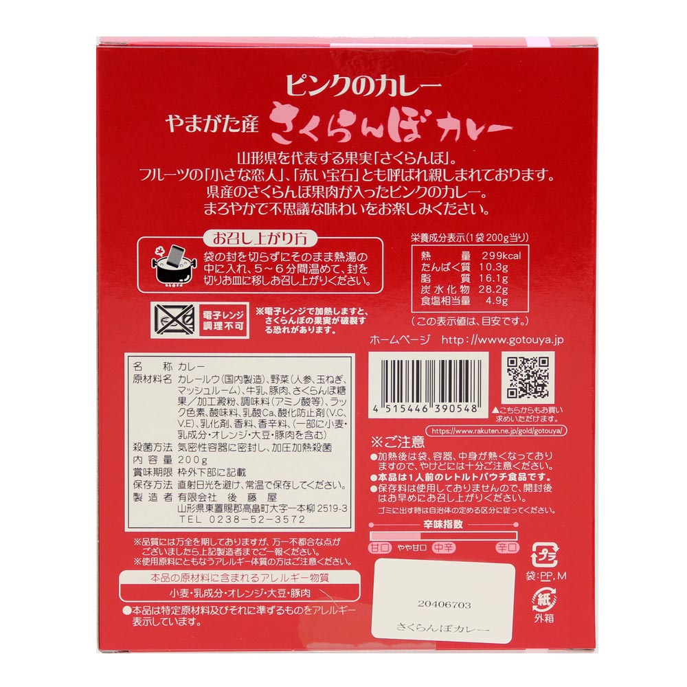 "山形県を代表する果実「さくらんぼ」。 フルーツの「小さな恋人」、「赤い宝石」とも呼ばれ親しまれております。 県産のさくらんぼ果肉が入ったピンクのカレー。まろやかで不思議な味わいをお楽しみください。"