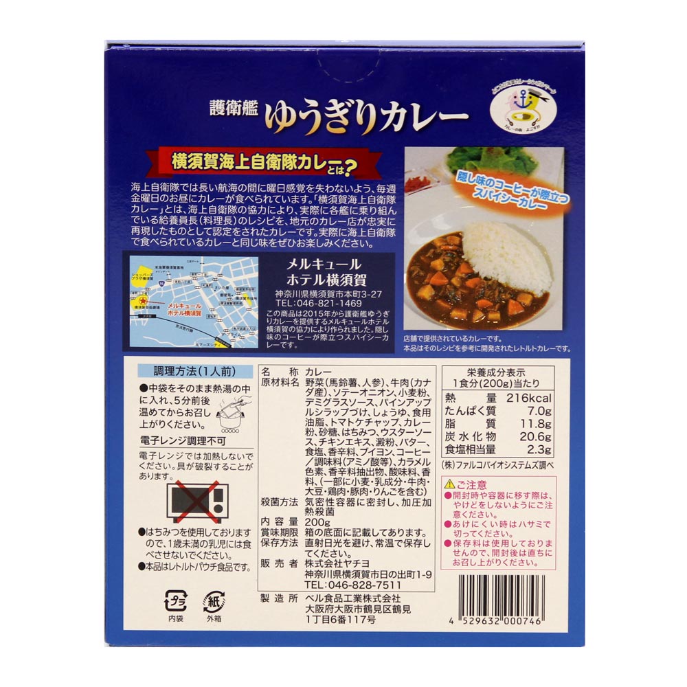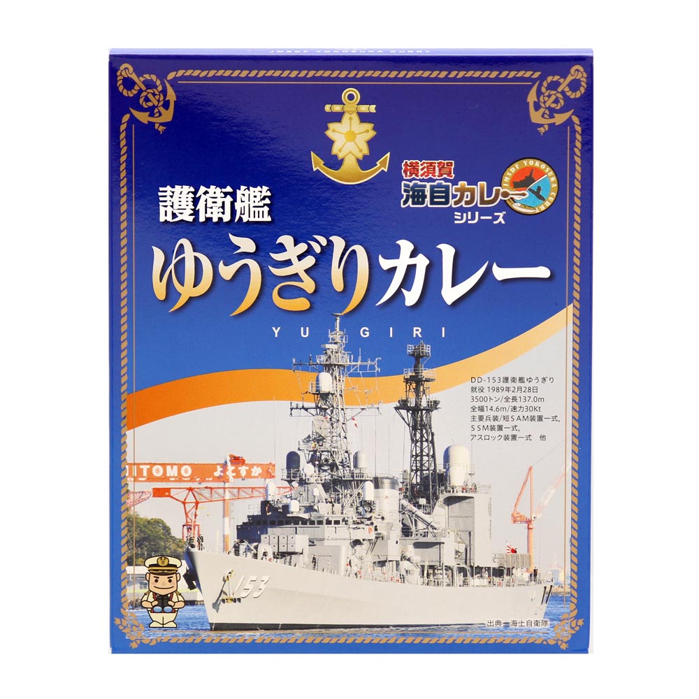 この商品は2015年から護衛艦ゆうぎりカレーを提供する「メルキュールホテル横須賀」の協力により作られました。隠し味のコーヒーが際立つスパイシーカレーです。