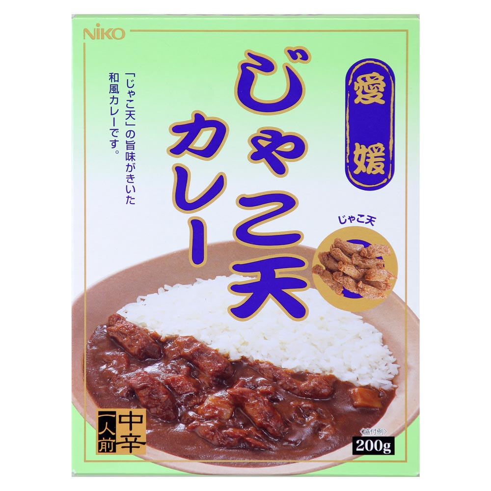 愛媛県に水揚げされた小魚(じゃこ)を骨ごと石臼ですり潰し、すけとう鱈のすり身を加え丹精込めて作り上げたじゃこ天は、プリプリした食感、小魚の美味しさがまるごと活きています。そのじゃこ天を辛味の効いたカレーソースで煮込んだ、魚の旨味が口の中で広がる和風の個性派レトルトカレーです。