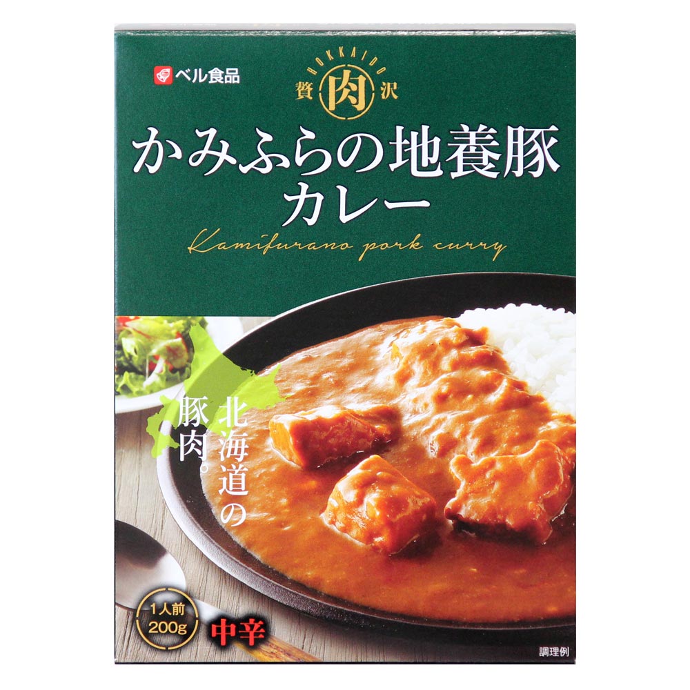 北海道十勝岳山麓、かみふらの牧場で育った、かみふらの地養豚の柔らかな肉のおいしさに炒め玉ねぎ、牛乳、バターの甘味と旨味を加えたマイルドな味わいの濃厚なレトルトカレーです。