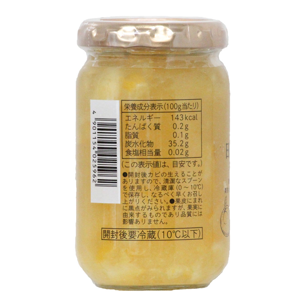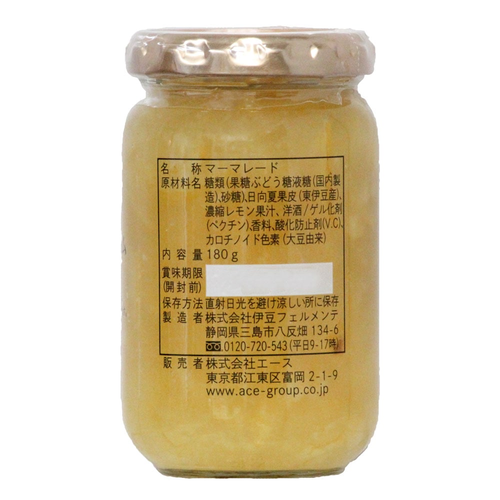 糖類(果糖ぶどう糖液糖(国内製造)、砂糖)、日向夏果皮(東伊豆産)、濃縮レモン果汁、洋酒/ゲル化剤(ペクチン)、香料、酸化防止剤(V.C)、カロチノイド色素(大豆由来)