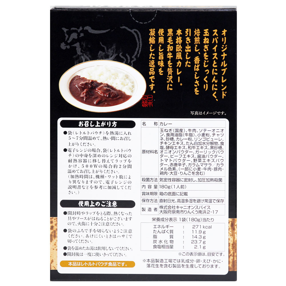 オリジナルブレンドスパイスとにんにく、玉ねぎをじっくり焙煎し、香ばしさを引き出した本格欧風のレトルトカレー。黒毛和牛を贅沢に使用し、旨味を凝縮した逸品です。