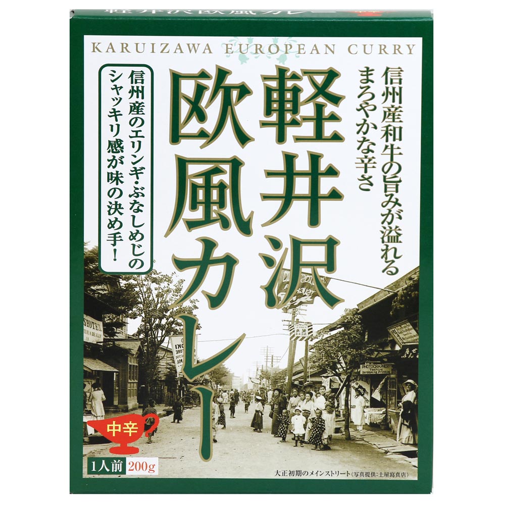 信州和牛と、信州産エリンギとぶなしめじの食感がお楽しみいただける甘さと辛味のバランスがとれた本格レトルトカレーです。
