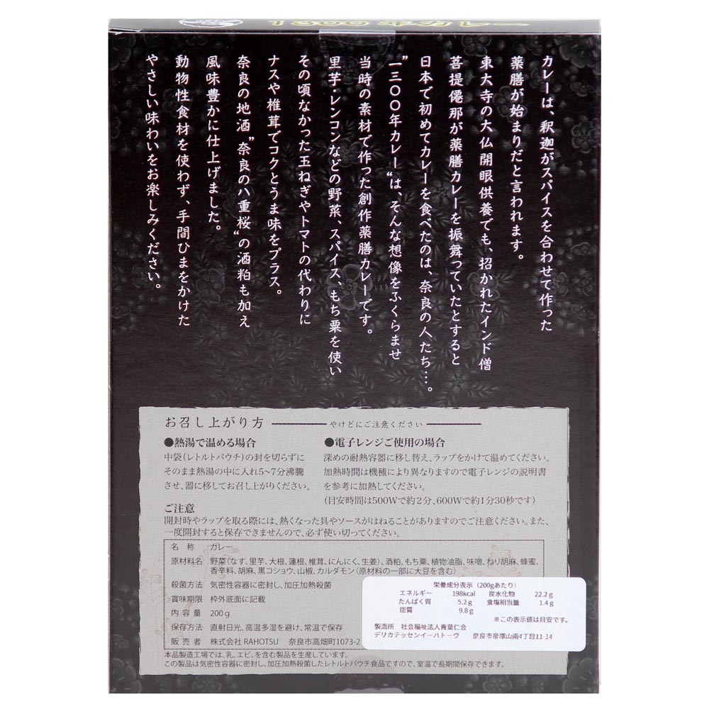“1300年カレー”は、そんな想像をふくらませ、当時の素材で作った創作薬膳レトルトカレーです。