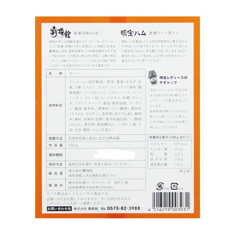 覇楼館と明宝ハム、明宝レディースのコラボレーションカレー。ハム職人の絶品まかないです。