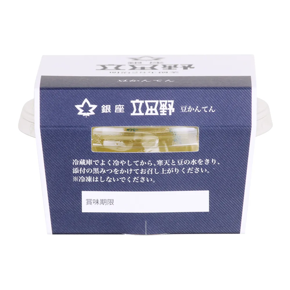 えんどう豆と国産天草の寒天を使用した贅沢な豆かんてん。寒天の歯ごたえとえんどう豆の食感、黒蜜の味わいが絶妙のバランスで相まっています。